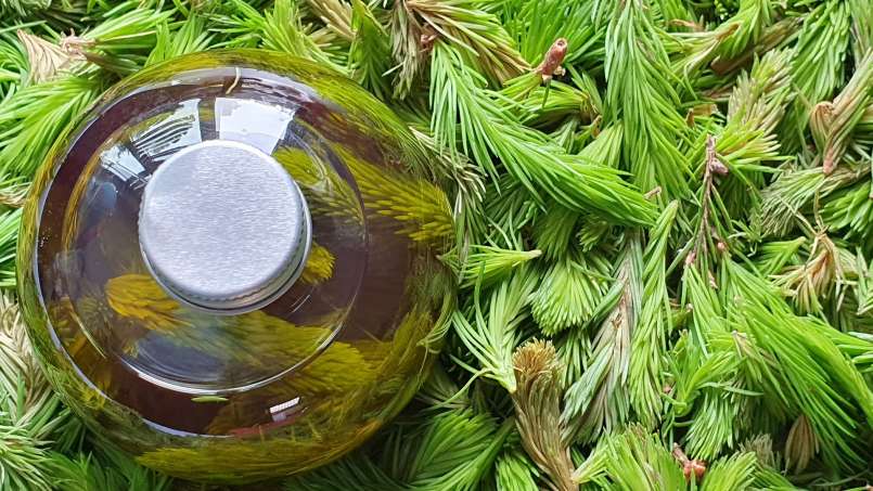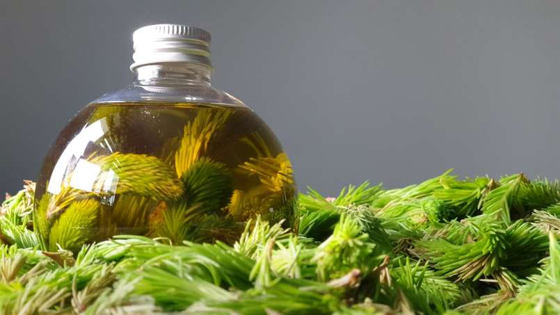 Qual é a diferença entre óleo de infusão de brotos e óleo essencial de pinho?