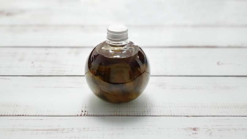 Após 30 dias, separe o óleo dos brotos. Você verá um óleo com uma coloração esverdeada e um sabor agradável. Armazene-o em um local escuro e longe da luz.